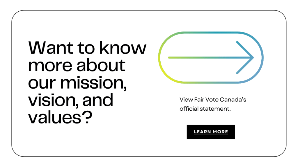 We’re ready to ignite the conversation on electoral reform, inform our communities on the benefits of proportional representation, and help create a democracy that people actually believe in.